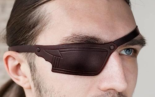 RAHBI Cache-Oeil, Cache-Oeil en Cuir rétro, Masque pour Les Yeux en Cuir PU déguisement Ajustable, pour la fête de Carnaval d'halloween (Marron,R)