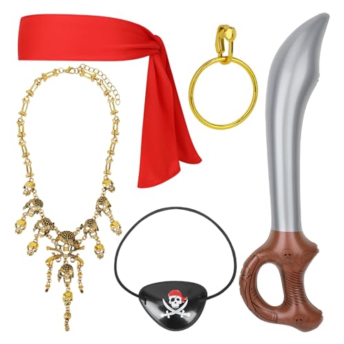VGMANNTA Deguisement Pirate Accessoires pour Enfants et Adultes Costume Pirate Femme Ensemble Cache Oeil Pirate Collier Fausse Epée Enfant Pirate Bandeau Boucle D'oreille pour Carnaval Cosplay