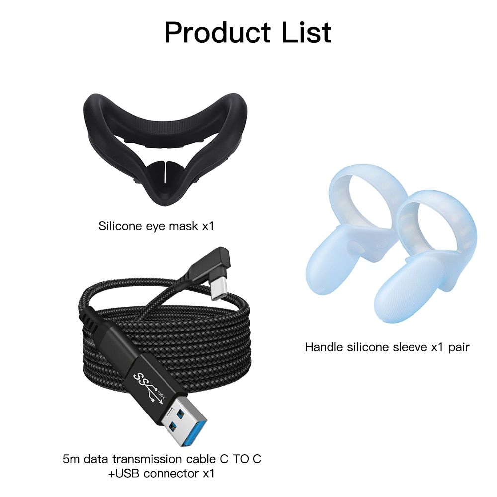 Convient Pour Oculus Quest 2 Smart Vr Lunettes, Poignée Cache-Oeil, Manchon En Silicone, Câble De Données De 5m