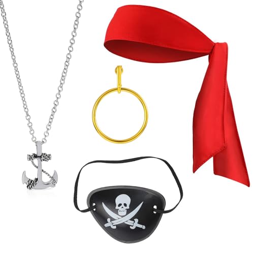 Alaoo 6 Pièces Ensemble d'Accessoires de Costume de Pirate, Bandana de Pirate,Ceinture,Collier,Cache-Œil,Boucles D'oreilles,Bracelet D'ancre de Pirate,Carnaval d'Halloween