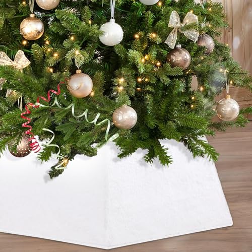 Jupe pour sapin de Noël, Cache Pied de Sapin, 122 cm, blanc, épaississement, imitation fourrure, tapis jupes pour arbres de Noël, décoration de Noël