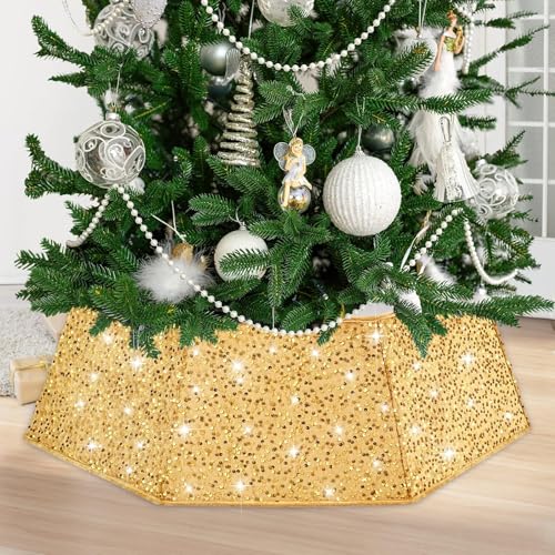Odot Cache Pied Sapin de Noel Paillettes, Couvre Pied Sapin Noël Or, Christmas Tree Skirt pour Décorations de Fête à Domicile (55 x 72 x 26 cm)