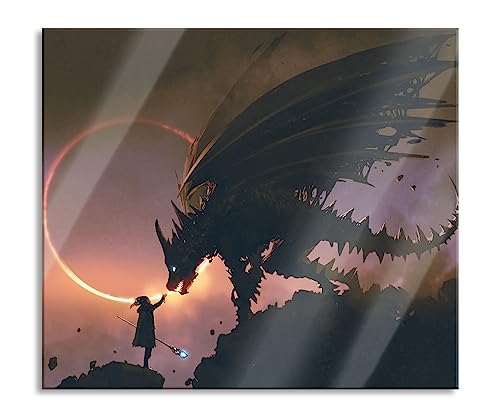 Pixxprint Cache-plaque de cuisson magicien et dragon en verre véritable pour plaques de cuisson 60 x 52 cm