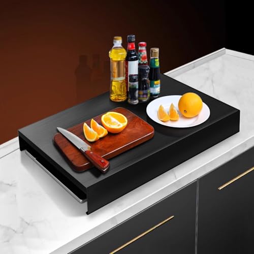 Couvre Plaque de Cuisson Gaz, Cache Plaque de Cuisson À Gaz Polyvalente, Gain de Place Dans la Cuisine, Étagères de Cuisine, Protection Plaque de Cuisson(Black,35x48cm/14x19in)