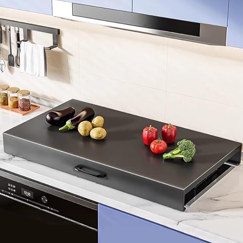 Cache Plaque de Cuisson en Acier Inoxydable, Couvre Plaque de Cuisson Gaz, Gaz/électrique, Agrandissement de L'espace de Cuisine, Facile À Nettoyer(Black,80x50x9cm/31x20x3.5in)