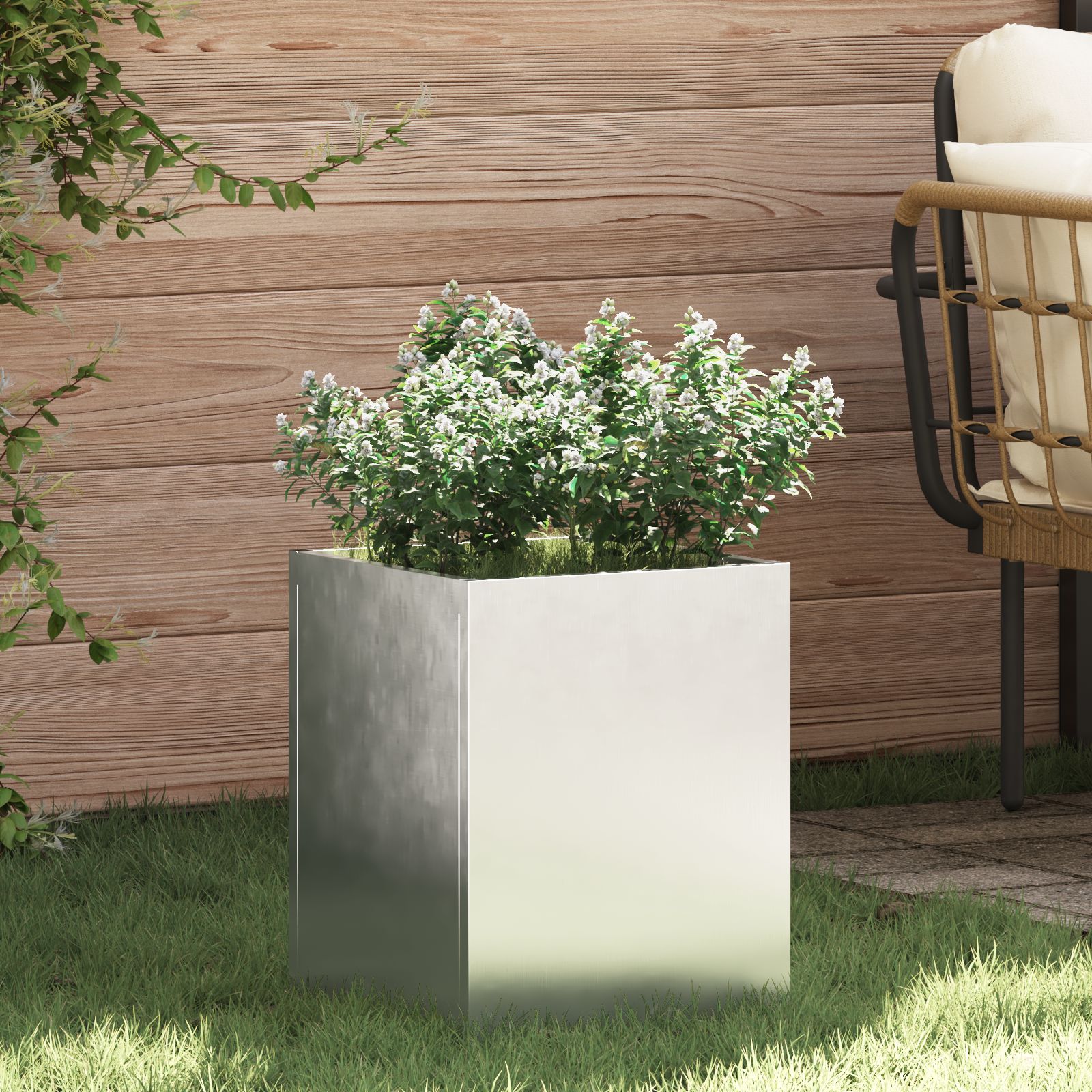 Vidaxl Cache-Pot De Jardin Argenté 50 X 32 X 40 Cm Acier Inoxydable