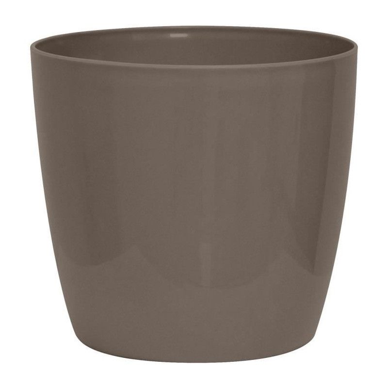 Cache-pot brillant - GARDEN ID - Shiny Taupe avec roulettes - 35 x 32 cm - Aspect céramique - Étanche - Déplacement aisé