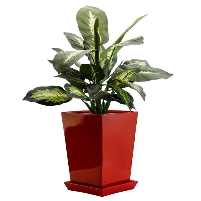 Pot De Fleurs Carré 3,5 L Cache Pot Jardinière En Plastique Terre Cuite Marron 19x19x16 Cm Pot Avec Soucoupe