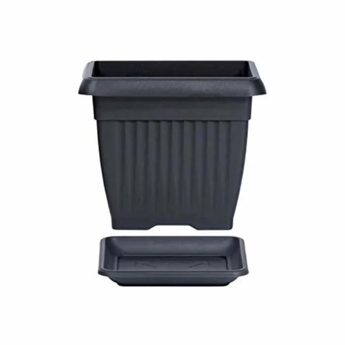 Pot De Fleurs Carré 7 L Cache Pot Jardinière En Plastique Anthracite 24x24x20 Cm Pot Avec Soucoupe