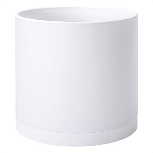 D'vine Dev 74-X-A-4 Cache-Pot en Plastique avec Trou de Drainage et soucoupes sans jointures, 35,5 cm, Blanc