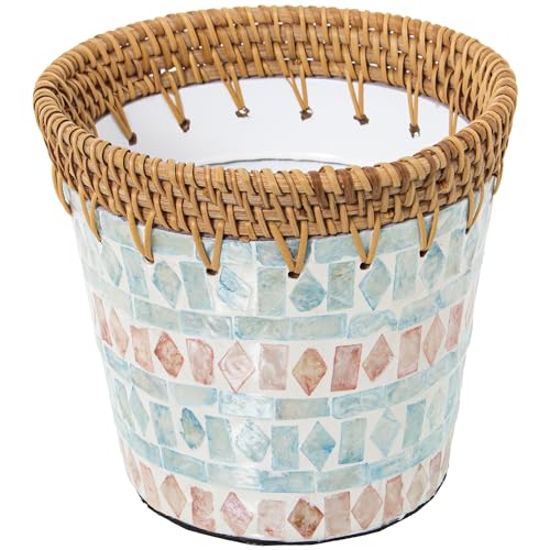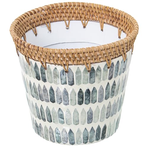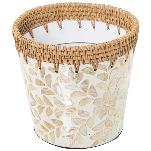 DRW Pot Rond en Nacre et rotin 14 x 18 cm
