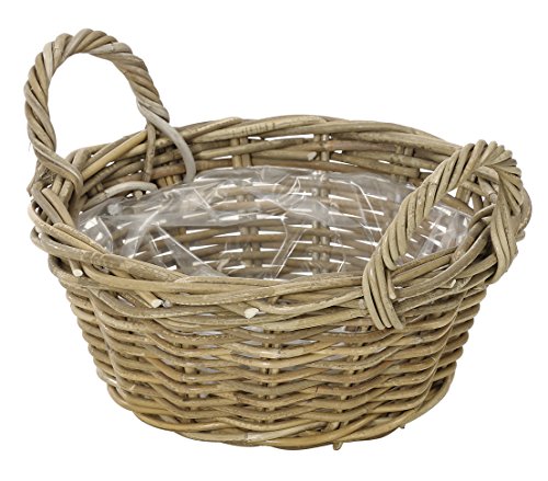 Dehner Pot de Fleurs en rotin avec Anse, diamètre : 26 cm, Hauteur : 12 cm, tressé, Gris/Marron