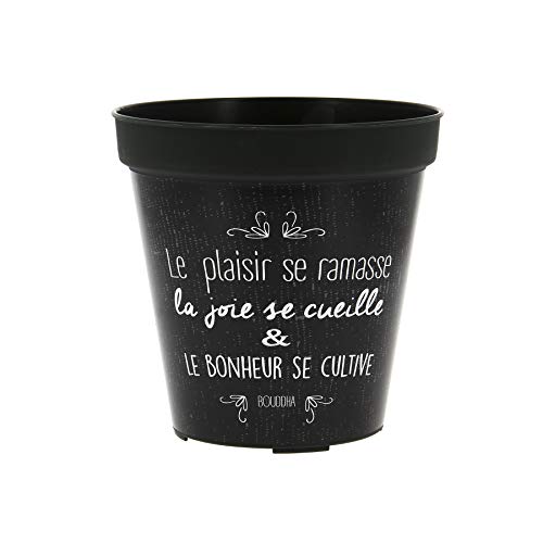 My Note Deco 065751 Cache Pot rond pré-percé 17cm CUEILLETTE en plastique recyclable, Noir, Diamètre 17 cm