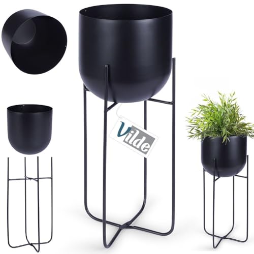Vilde Cache-pot sur support en métal Noir 16,5 x 42 cm
