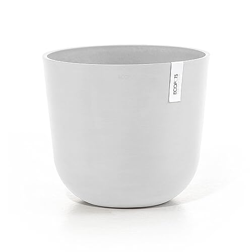 ECOPOTS Oslo Pot de fleurs blanc – Avec alimentation en eau – Diamètre : 25 cm – Grand pot de fleurs rond en plastique recyclé – Cache-pot moderne pour l'intérieur et l'extérieur