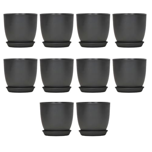 URPIZY Lot de 10 pots de fleurs avec soucoupe, 18 x 16,5 cm, en plastique, noir et blanc, cache-pot moderne pour plantes d'intérieur, herbes et décoration