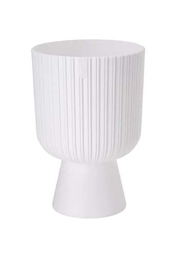 DIKEL Pot de fleurs - Diamètre : 18 cm - Hauteur : 26 cm - Avec structure striée et pied stable - Cache-pot au look moderne - Pot de fleurs idéal pour la décoration intérieure - Blanc