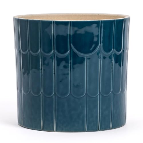Élégant vase en terre cuite, bleu mer avec arcs décorés | diamètre 13,5 cm - hauteur 13 cm | pot décoratif pour plantes, fleurs, bonsaï, plantes succulentes, Sansevieria | Cache-pot d'intérieur