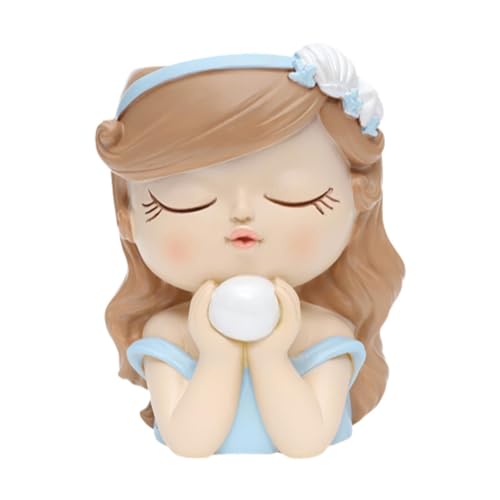 Fenteer Pot de Fleurs Visage Jardinière Tête Statue Buste Vase Fille Cache-Pot Artistique en Résine Robuste avec Une Posture Élégante Approprié pour La Décor, Blanc Bleu, 8x7x11cm