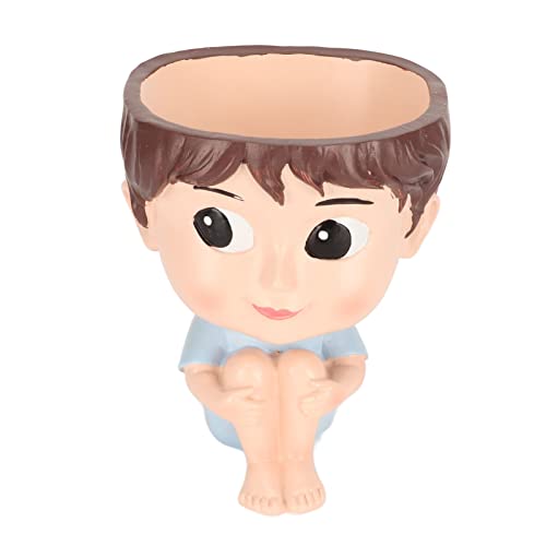 QWUUYEC Pot de Fleur Visage, Cache - Pot Résine Léger en Forme de Garçon, Décoration Intérieure et Extérieure - Design Original et Mignon, Idéal pour Succulentes et Cadeau