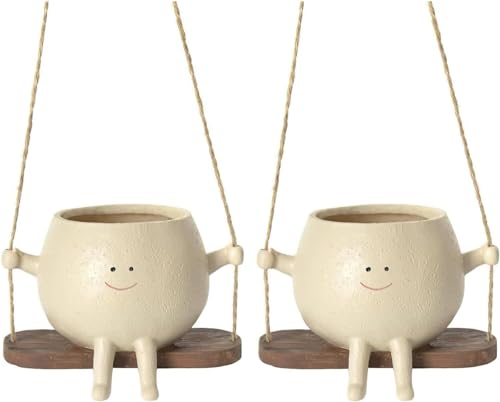 Cache-pot avec balançoire et visage souriant, pot de fleurs à suspendre pour plantes succulentes, cactus - Pot de fleurs décoratif pour l'intérieur et l'extérieur - Pour chambre, balcon, jardin,