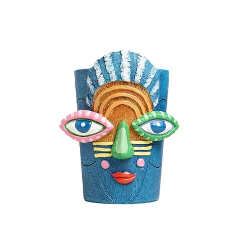 ZGFHLI Pot De Fleurs Abstrait, Résine,Vase en Forme De Tête Abstraite pour La Déco,Drôle,Visage Coloré,Cache-Pot Abstrait Coloré,Décoration D'intérieur Amusante,Salon,B