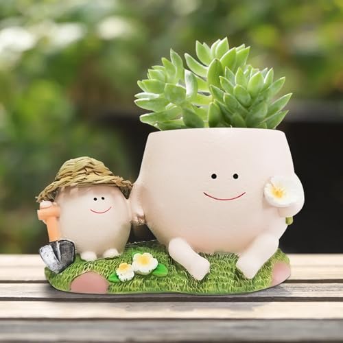 Pot de Fleurs avec Visage, Cache-Pot pour succulentes, Pot de Fleurs en résine synthétique avec Trou de Drainage en Forme de cœur, Pot de Fleurs en résine pour Fille