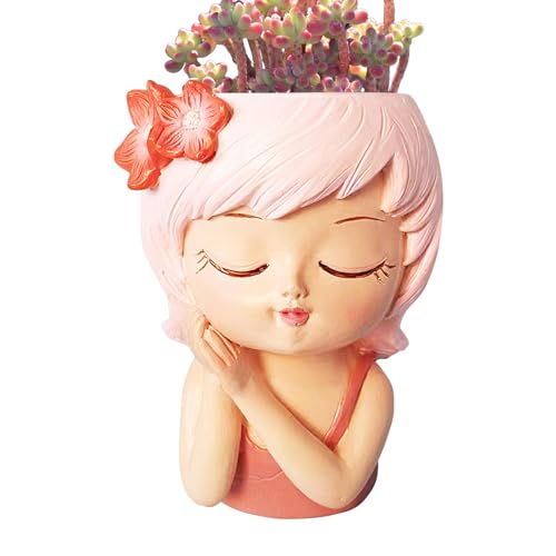 Dualoai Pot de Fleurs Cache-Pot Amusant Jardinière Fantaisie et Vase pour Plantes en Résine Légère avec Visage de Fille Adapté pour La Chambre Le Salon, Style A