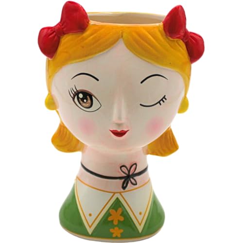 manhegari Cache-pot avec visage, tête de fille - 13 x 14 x 13 cm - En résine créative - Pour intérieur et extérieur - Décoration de cour
