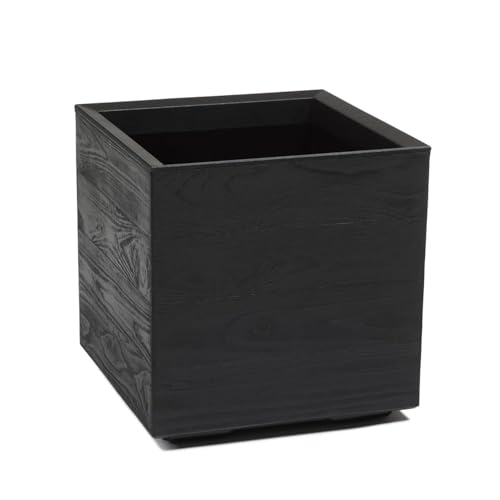 LAMELA Bac à Plantes sur roulettes 40 cm, 36 L - Pot de Fleurs en Plastique Effet Bois - Cache-Pot avec Drainage - Intérieur & extérieur - Résistant aux intempéries et Facile d’Entretien, Noir