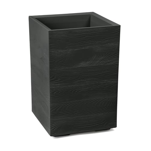 LAMELA Bac à Plantes sur roulettes 40 cm, 36 L - Pot de Fleurs en Plastique Effet Bois - Cache-Pot avec Drainage - Intérieur & extérieur - Résistant aux intempéries et Facile d’Entretien, Anthracite