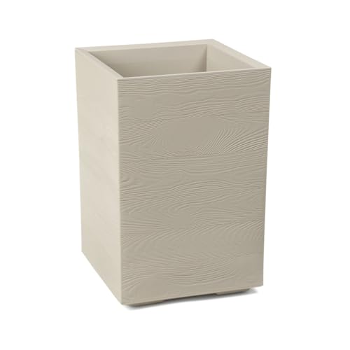 LAMELA Bac à Plantes sur roulettes Hauteur 60 cm, 36 L - Pot de Fleurs en Plastique Effet Bois - Cache-Pot avec Drainage - Résistant aux intempéries et Facile d’Entretien, Beige