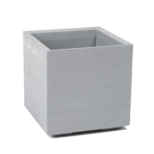 LAMELA Bac à Plantes sur roulettes 40 cm, 36 L - Pot de Fleurs en Plastique Effet Bois - Cache-Pot avec Drainage - Intérieur & extérieur - Résistant aux intempéries et Facile d’Entretien, Gris Clair