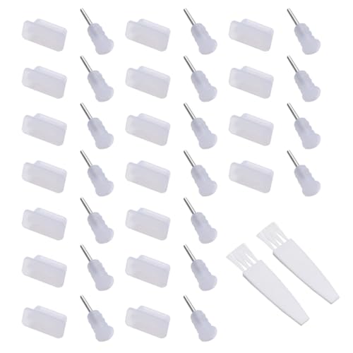 Angoily Protection Anti-poussière Type-c 20 Paires Silicone Transparentes 2 Brosses Blanches, Cache Prise USB C Compatible Téléphones Portables, Accessoires Entretien et Maintenance