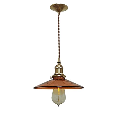 LYMGRZ Suspension Moderne en Laiton - Culot E27 à Une tête avec Cache-Pot Marron et Abat-Jour en Verre, éclairage de Plafond rétro Industriel pour Restaurant et Bar (B)