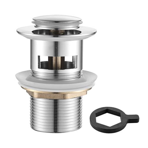 KIRCHHOFF Design Garniture de vidage Universelle pour lavabo, Pop Up Bouchon de lavabo, soupape de vidage avec trop-Plein, Bouchon de vidage pour lavabo de Salle de Bains & lavabo, Chrome 98807330