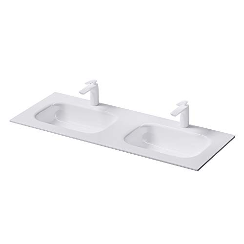 Mai & Mai Double vasque à encastrer blanc lavabo 2 Vasques 120x48x12 cm lave mains Col03 rectangulaire en résine avec trop plein
