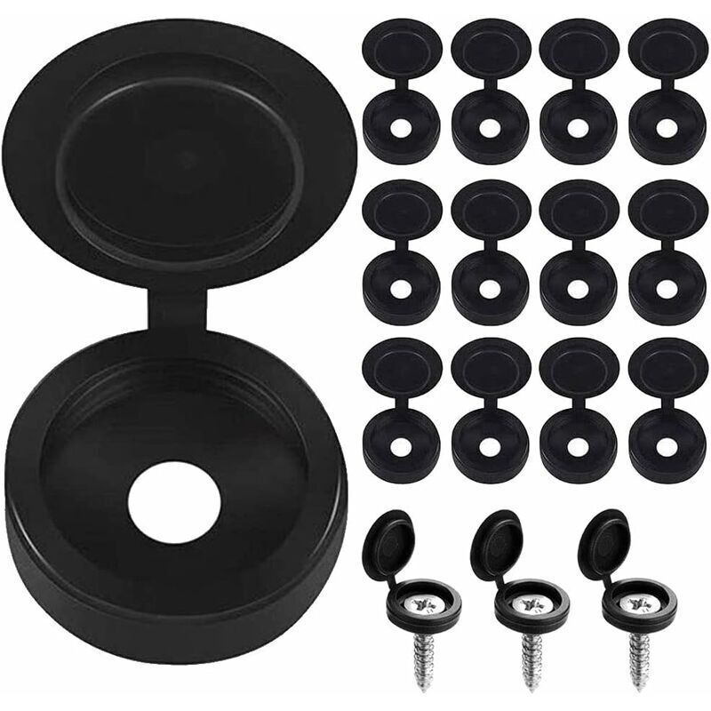 Lot de 50 cache-vis en plastique noir, capuchons à charnière rabattables, rondelles anti-poussière en caoutchouc, couvercles rabattables, noir