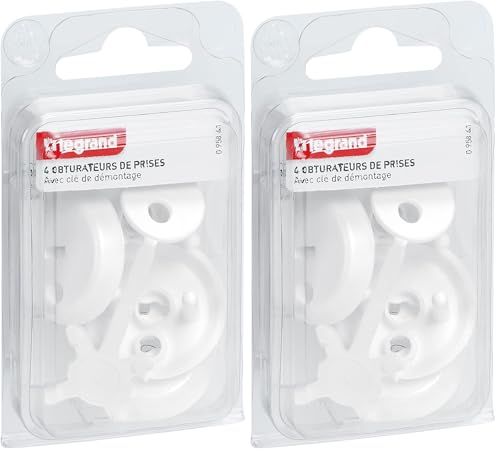 Legrand - Cache-prises de courant - 4 caches pour prise avec terre, Blanc (Lot de 2)