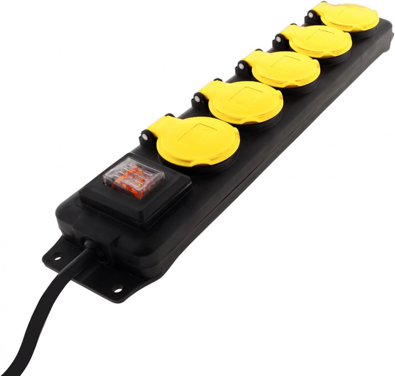 JEXNOVASHOP-Multiprise Extérieure IP44-5 Prises Standards français 2P+T 16A avec caches et fiche 16A