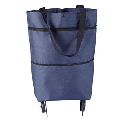 Dianshaoa Sac À Provisions Pliant avec des Roues Chariot De Course Pliable À Roulette Caddie Courses Pliant Marine 50 * 30cm