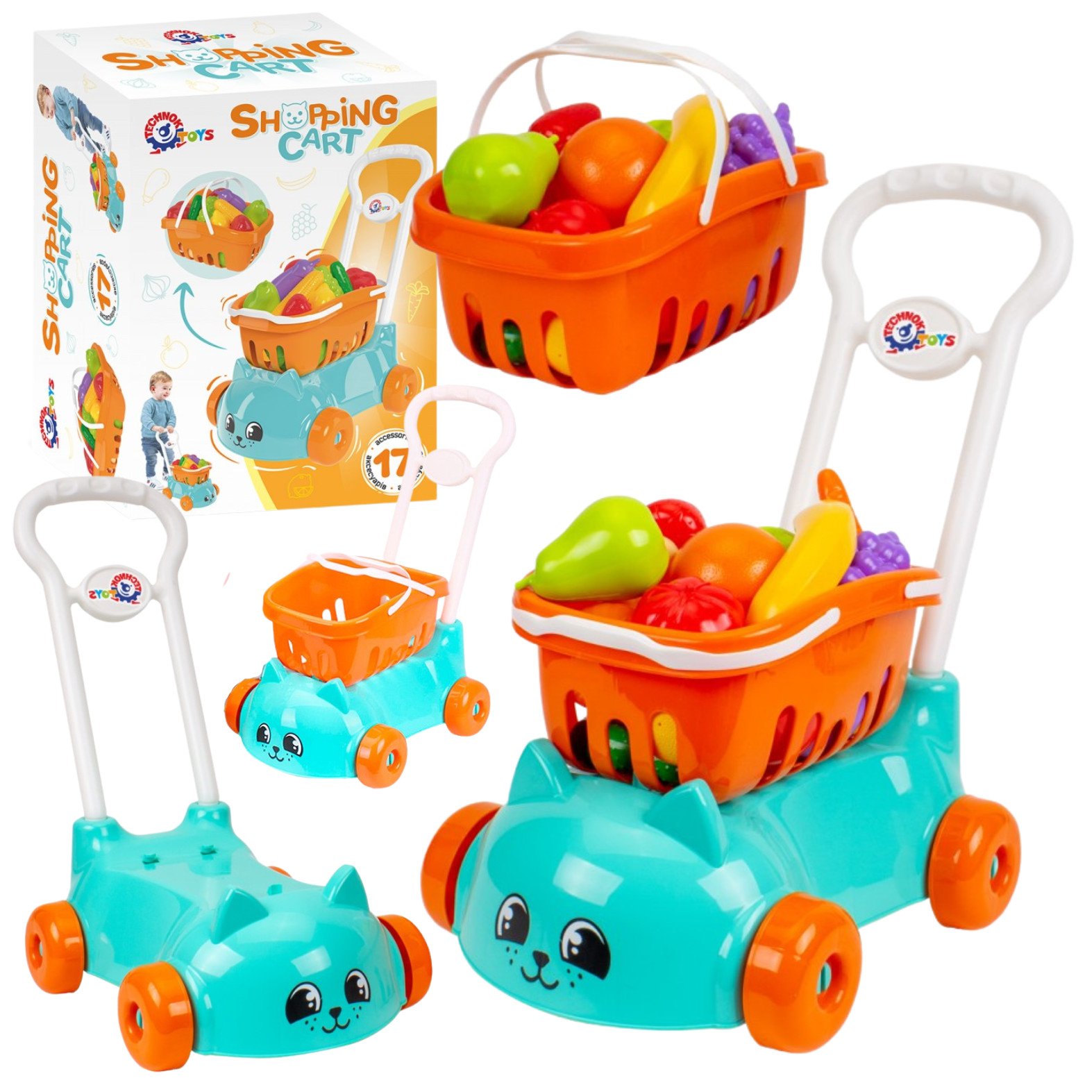 Caddie pour enfant avec panier de fruits et légumes, motif chat, 7570
