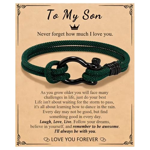 KOSLEOW Bracelet Garçon Adolescent Tissé Main Noir, Cadeau d'Anniversaire Fils 12/13/16/18 Ans avec Carte Always Remember (GREEN)