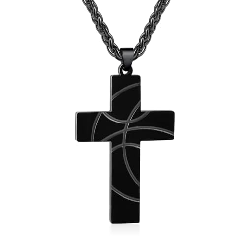 CheersLife Garçon Basketball Croix Collier, Pendentif En Acier Inoxydable Chaîne Sport Bijoux Cadeaux Pour Hommes -Anniversaire Noël Saint Valentin Retour À L'École Graduation Cadeau Ado Garçon
