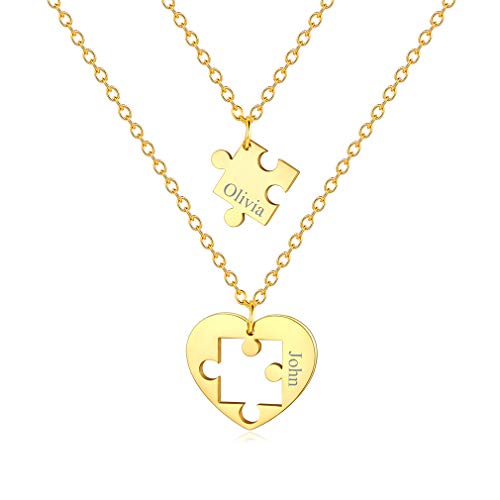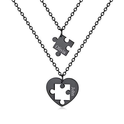 Custom4U Collier Couple Prénom Personnalisé Amoureux pour 2,2 Pcs Pendentifs Puzzle Coeur Séparé en Acier Inoxydable pour Femme et Homme - Bijoux Cadeau Couple Anniversaire