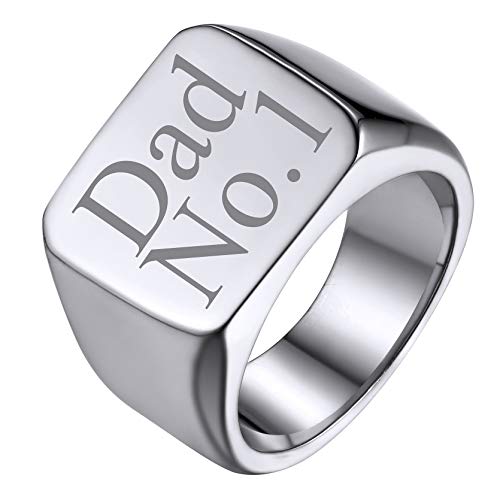 Anneau Homme Bague Garçon 925 Sterling Photo Gravé Porte Prénom Gravure Argent Acier Inoxydable Chevalière Personnalisé Doré 62-Cadeau Noël Mari Fêtes des Pères l'Action de Grâce Couple Anniversaire