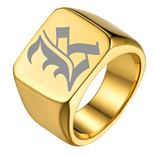 Bague Chevalière Initiale Homme Acier Inoxydable Anneau Garçon Gothique Poli Bague Carré [Plaqué Or 18K]-Bijoux Cadeau pour Mari Père Couple Anniversaire