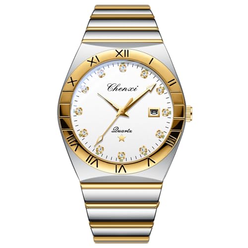 JewelryWe Montre Couple Acier Inoxydable: Montre Homme Femme avec Cadran Index Chiffres Romains et Strass Montre Analogique Quartz Étanche 3ATM Aiguille Luminescent- Cadeau Anniversaire Saint-Valentin