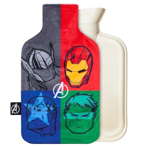 Marvel Bouillotte Eau Chaude avec Housse en Tissu Doux Hot Water Bottle Enfant Adulte Idée Cadeau Spiderman Avengers (Multi Avengers)