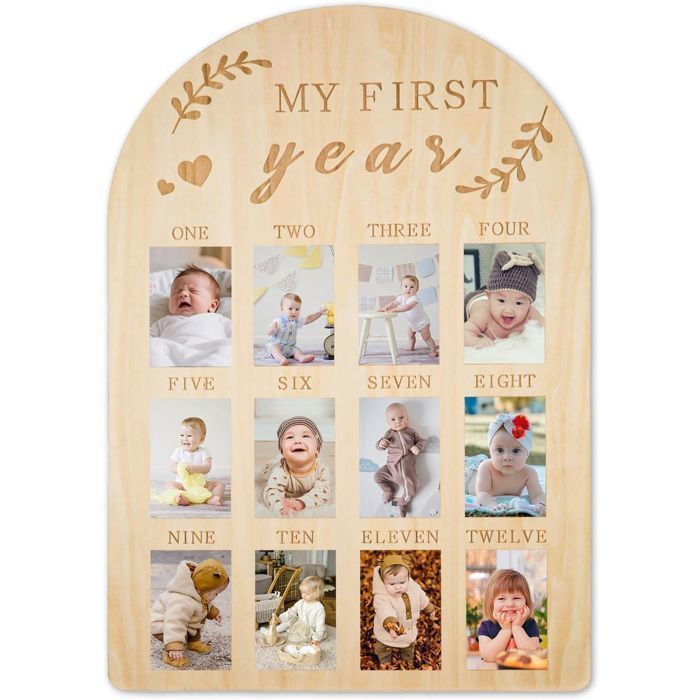 Cadre Photo Bébé en bois - Personnalisé 12 Mois Cadre Photo Nouveau-Né - Idée Cadeau de Naissance ou Baptême - 43 x 30.4 x 1 cm